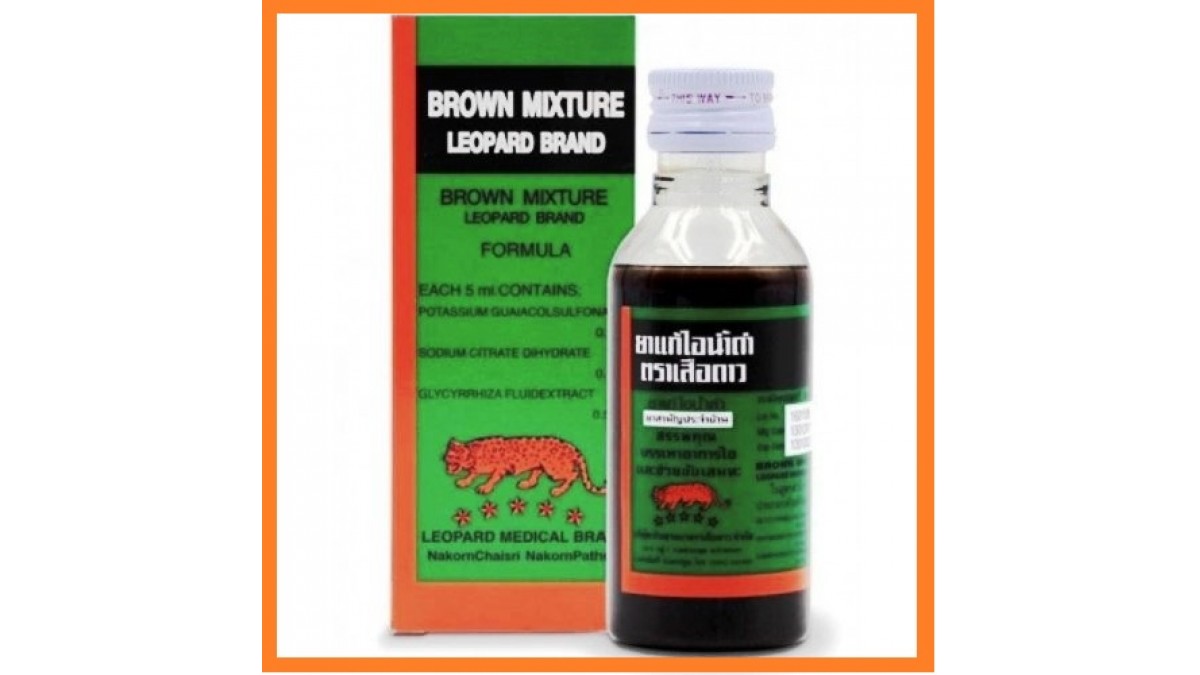 Коричневая микстура от кашля с красным леопардом — это популярное в Таиланде средство от кашля.